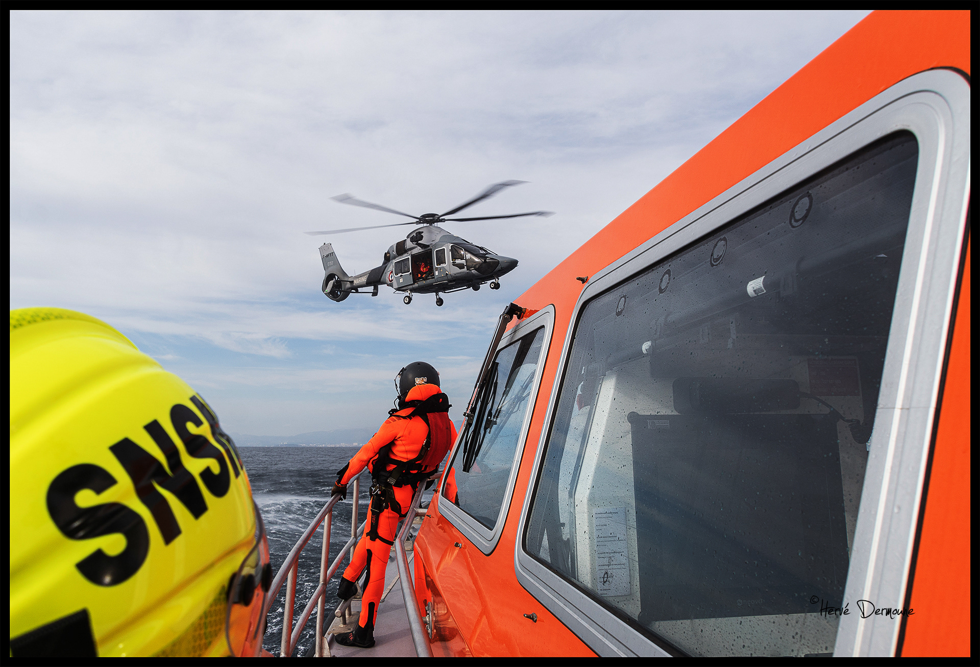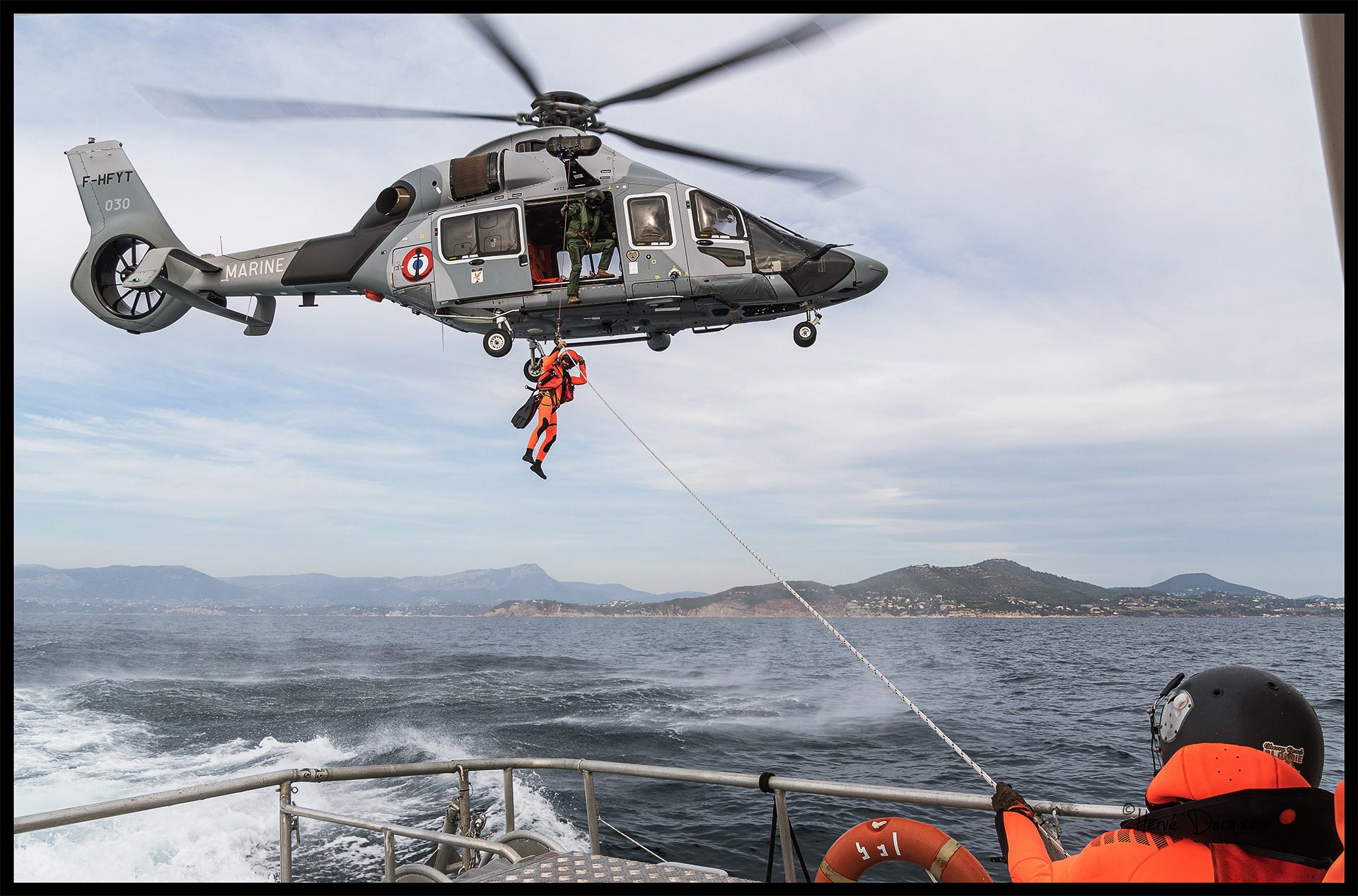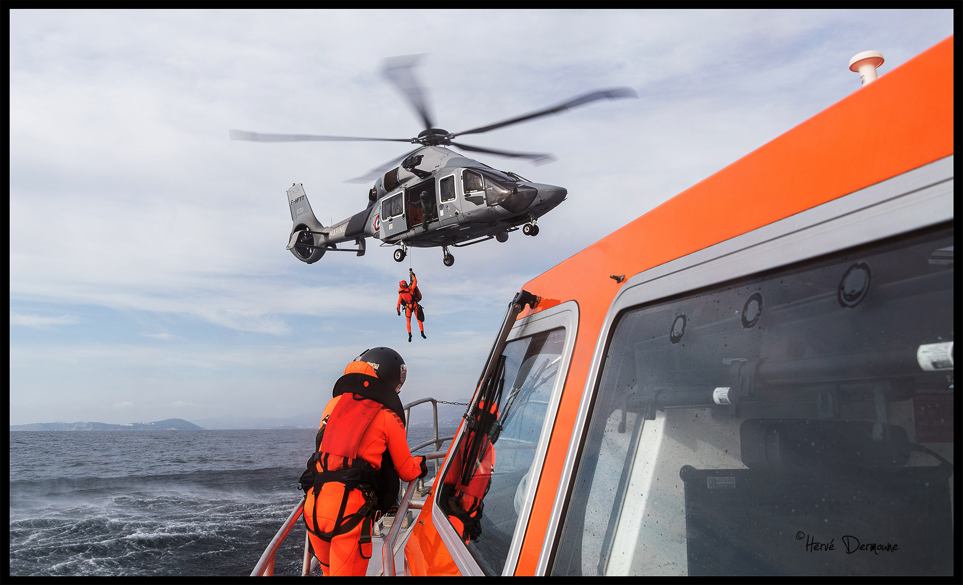 Régulièrement, la station de la SNSM de Saint-Mandrier s'entraîne aux hélitreuillages avec les flottilles de la BAN de Hyères.