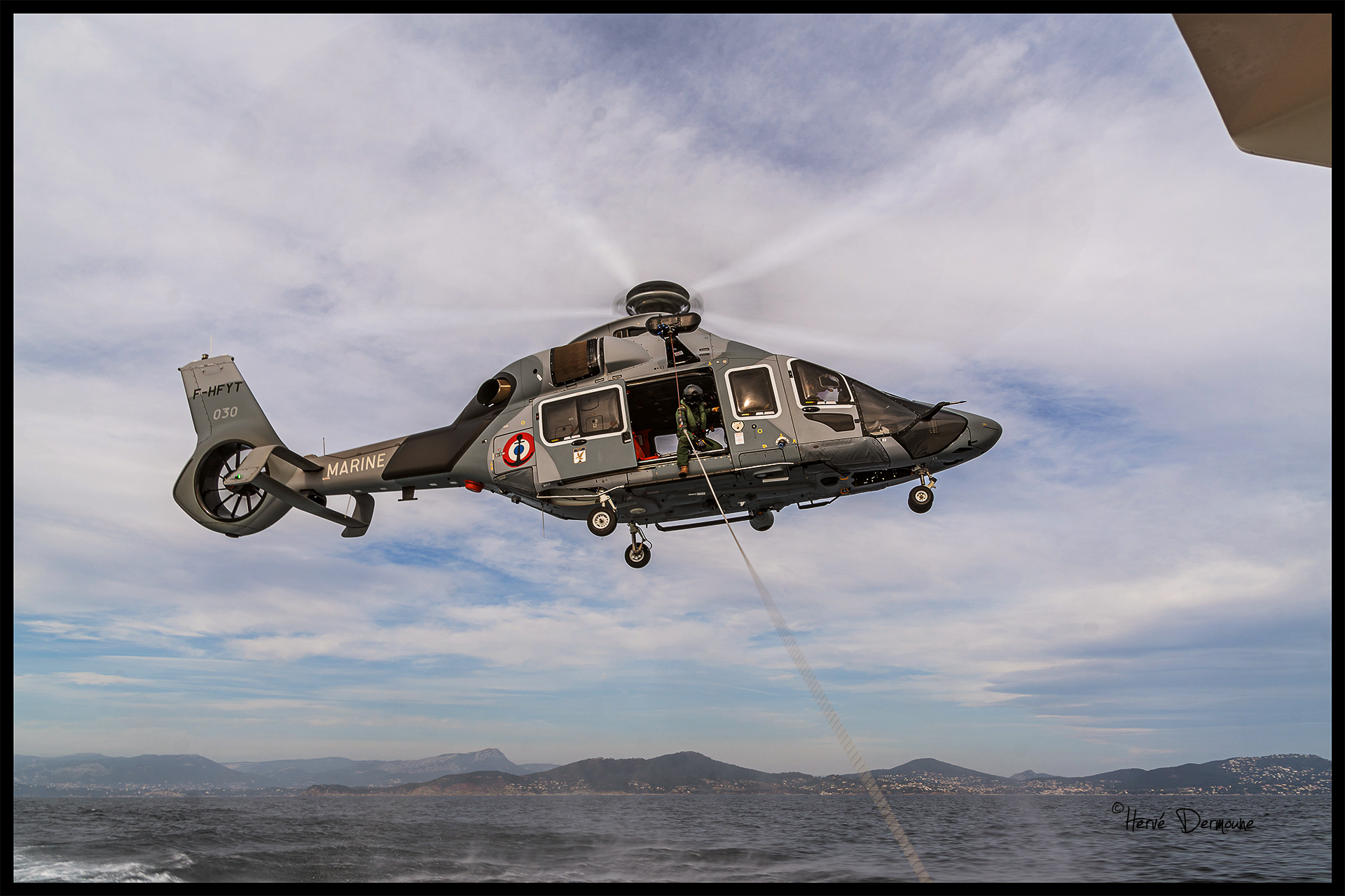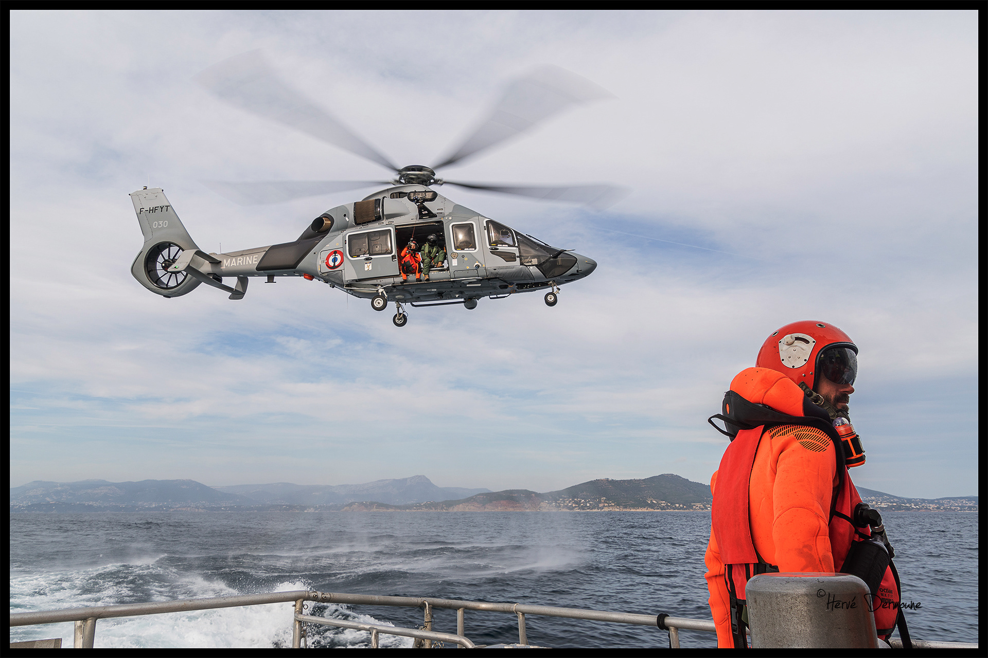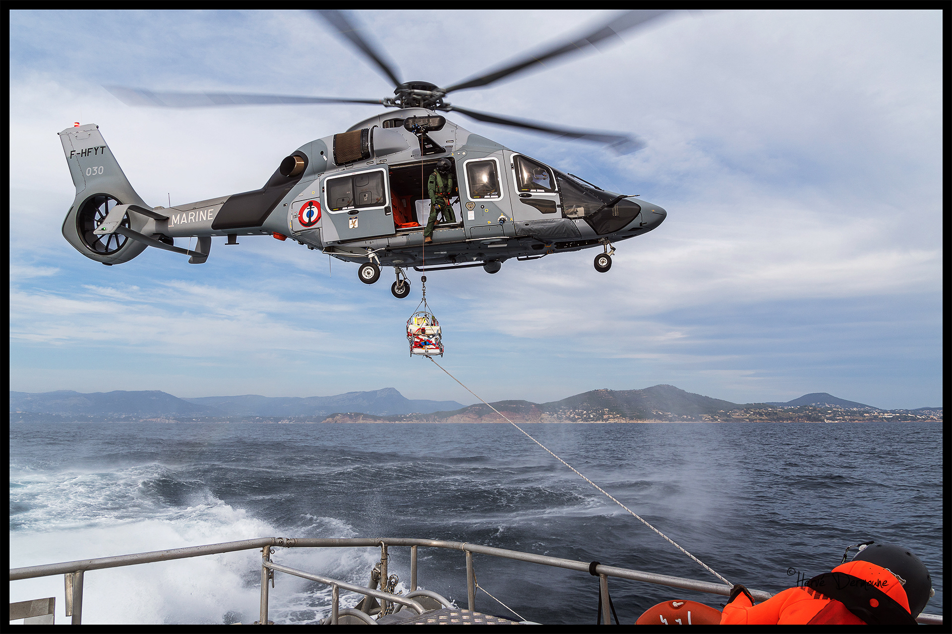 Régulièrement, la station de la SNSM de Saint-Mandrier s'entraîne aux hélitreuillages avec les flottilles de la BAN de Hyères.