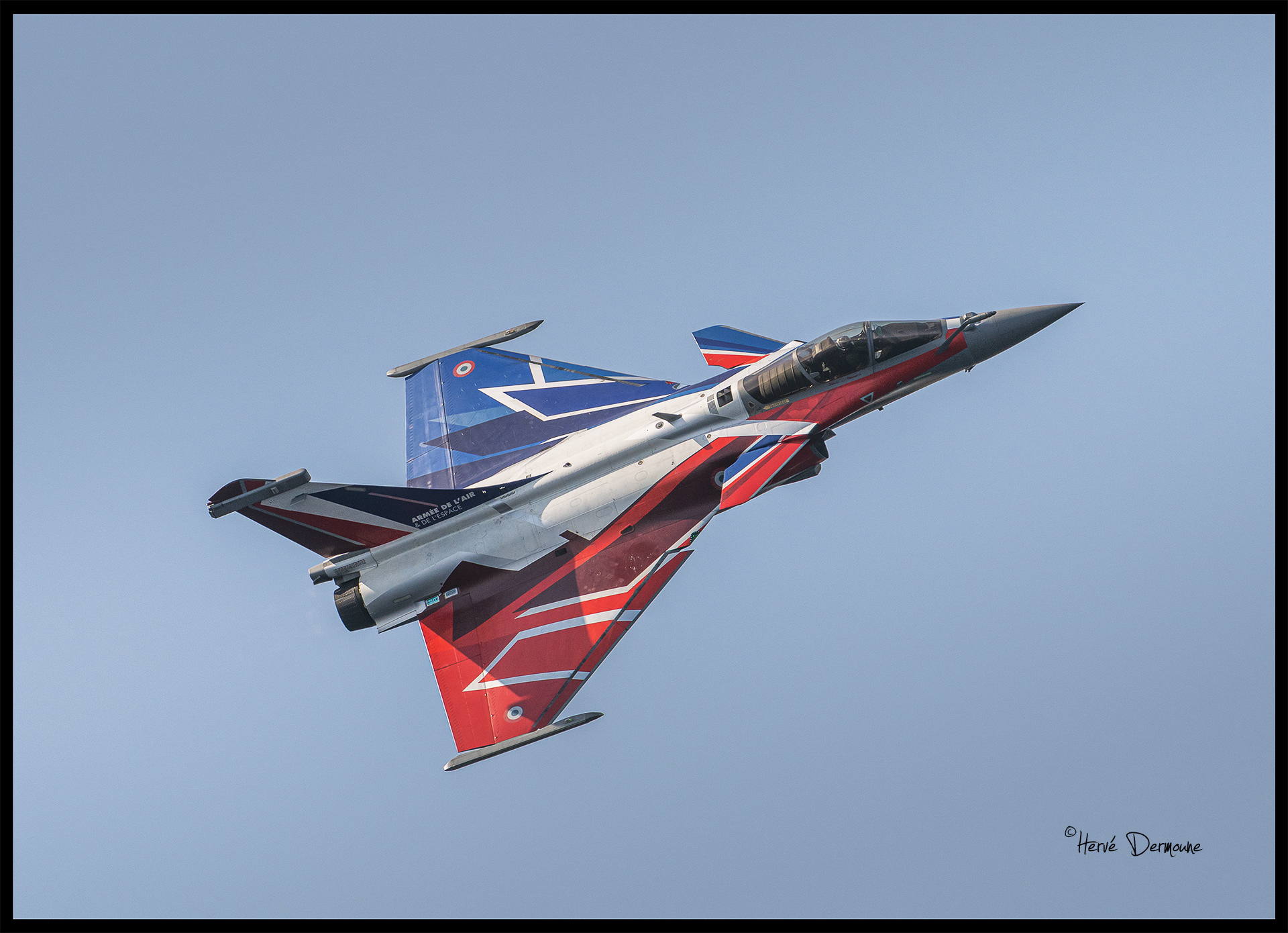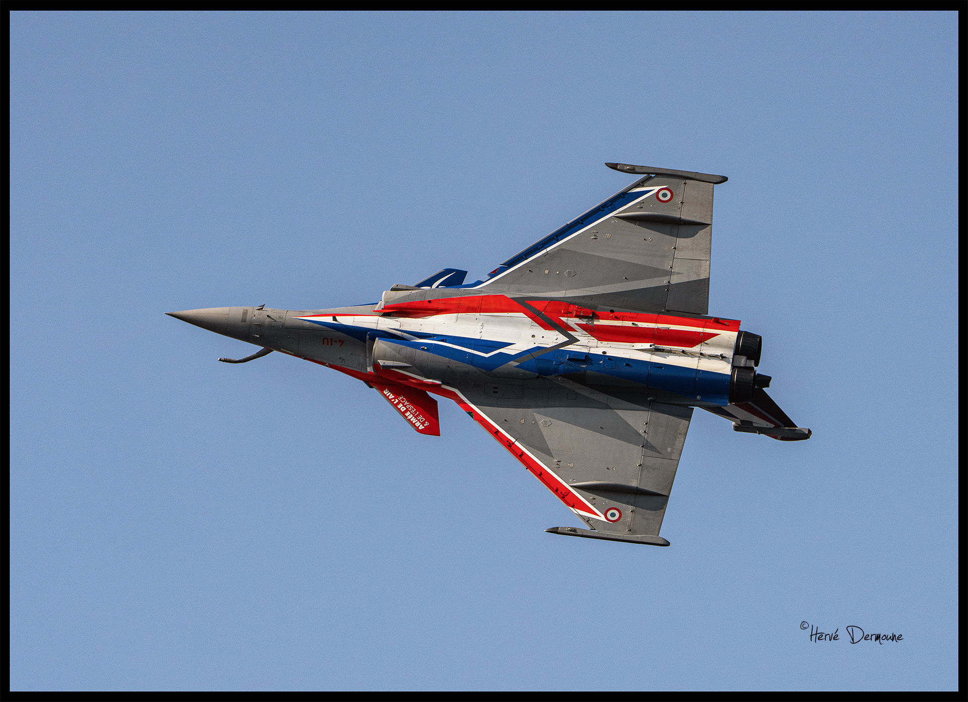 C'est donc le Rafale Solo Display de l'Armée de l'air et de l'espace piloté par "Mimouss" qui se présente, avec sa superbe livrée 2025.