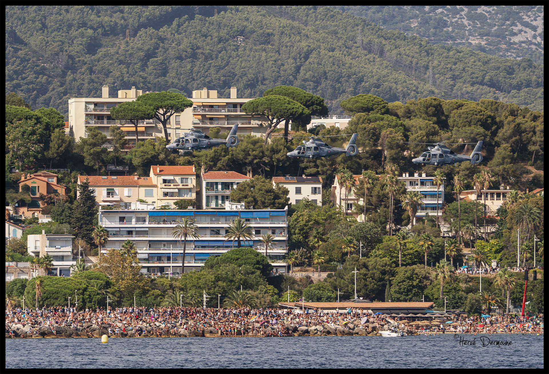 S'enchaîne une très belle démonstration d'un trio de Panther de la flottille 36F. Ce n'est pas si souvent qu'on a le droit à une formation d'hélicoptères de la Marine en démonstration.